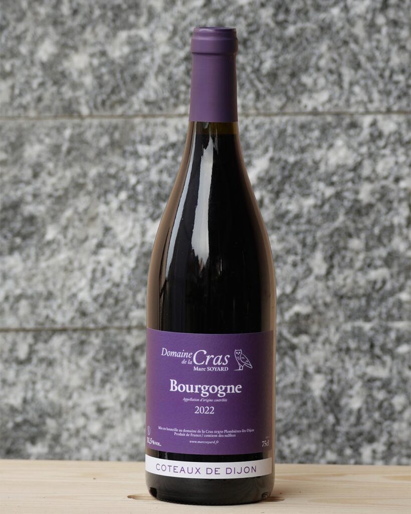 Situato sulle alture che dominano Digione, capoluogo della Borgogna, Domaine de la Cras è gestito da Marc Soyard. Nel 2013, la città di Digione ha scelto il giovane enologo Soyard per prendere in mano e gestire con carta bianca alcuni dei migliori vigneti della regione. In cambio della terra, della grotta e della possibilità di imbottigliare il proprio vino, Marc deve pagare una “tassa” sotto forma di bottiglie di vino ogni annata alla città di Digione. Marc Soyard, che ha trascorso sei anni presso il prestigioso Domaine Bizot a Vosne-Romanée lavorando come apprendista e successivamente come collaboratore di Jean-Yves Bizot, ha portato con sé un prezioso bagaglio di esperienza e conoscenze nella sua nuova avventura. La parte più alta ed esposta del domaine è dedicata alla coltivazione di Pinot Noir e Chardonnay, varietà che vengono utilizzate per produrre la cuvée “Cras”, il top della produzione di Domaine de la Cras. Il domaine adotta pratiche viticole sostenibili e un approccio rispettoso dell’ambiente per preservare la qualità delle uve e il carattere distintivo del terroir. I suoli del domaine sono principalmente composti da calcare e argilla, tipici dell’area di Digione. Questa combinazione di suoli fornisce un buon drenaggio e una ricca struttura minerale, essenziale per la maturazione ottimale delle uve. Il calcare conferisce ai vini freschezza e mineralità, mentre l’argilla contribuisce alla complessità e alla struttura. La denominazione ufficiale del domaine è Bourgogne AOC, ma Domaine de la Cras è uno dei pochissimi domaine della Borgogna autorizzato ad utilizzare la denominazione Coteaux de Dijon, nonché la possibilità di etichettare le loro cuvée blanc e rouge con “Monopole”. Con un approccio che unisce tradizione e innovazione, Domaine de la Cras continua a offrire vini che celebrano la qualità e la varietà della Borgogna, portando avanti una tradizione vitivinicola di grande prestigio.