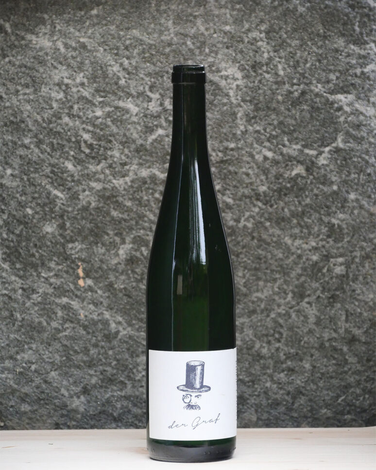 Der Graf è stato il primo vino di Philip Lardot, proveniente da un lungo e ripido pendio nella famosa città di Piesport, nella Mosella. Questa è la vinificazione senza intervento al suo apice, un nuovo senso di avventura odiato da molti professionisti del vino ma amato da noi: ogni anno questo vino ci offre una prospettiva completamente nuova sul suo terroir. Dalla perfetta annata 2019, dove freschezza, eleganza, profondità e mineralità sono tutte in perfetto equilibrio. Tutto sta andando insieme qui e questo è un perfetto esempio di Mosel non intervento: eccitante, allettante, spesso inaspettato e sempre proveniente da quella solida base di struttura, mineralità e acidità. Der Graf è un ragazzo divertente, anche con quei baffi!