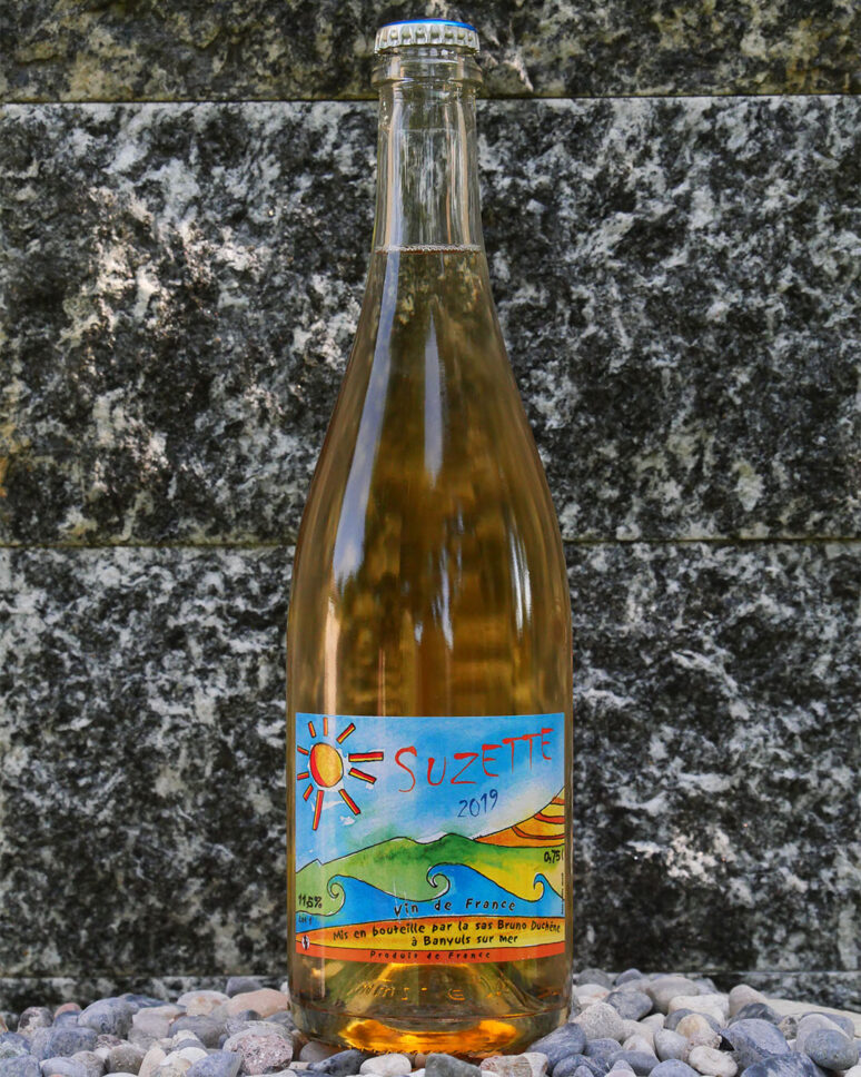 Bruno Duchêne è originario del Loir-et-Cher, un luogo francese della regione centrale della Loira. Nel 2002 ha acquistato piccoli appezzamenti di vigneti sui ripidi pendii che si affacciano sulla città di Banyuls, il vigneto aziendale è costituito da 4 ettari, divisi in piccole parti, posizionati su pendii ripidi ad un’altezza di 300 slm dove la macchina e il trattore sono difficili da lavorare in quella situazione, ma il clima mite della regione diventa un prezioso alleato nelle pratiche agricole pulite, infatti, i trattamenti (limitati al rame e allo zolfo) sono ridotti al minimo e utilizzati solo quando strettamente necessario. Bruno Duchêne coltivava molte uve per i suoi vini naturali, come Grenache Noir, Blanc e Gris, Carignan, Mourvedre, Tempranillo, Fer Servadou e Syrah. In cantina, Bruno cerca di intervenire il meno possibile con vinificazioni spontanee e l’uso minimo di zolfo, al fine di dare vita ai vini che rappresentano il territorio.